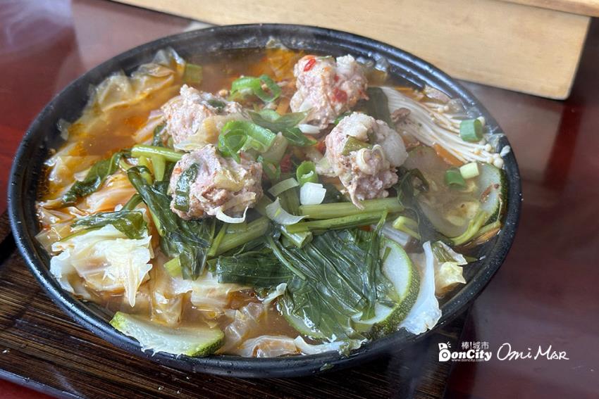 好似「小火鍋臭臭鍋」,裡面加了金針菇、高麗菜、大黃瓜片..等等各種蔬菜,還有四顆小肉丸,配料很實在。