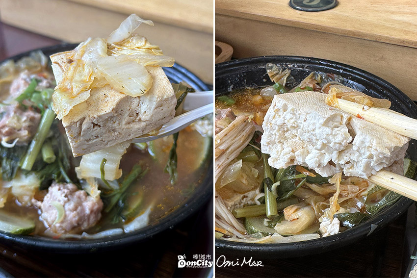 清蒸臭豆腐吸附滿滿湯汁,臭得很迷人、越吃會越上癮,麻辣湯底接近中辣程度、辣得很痛快。